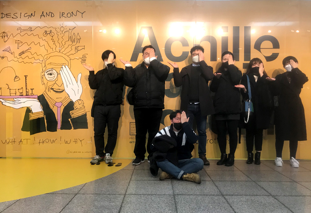 ‘디자인계의 마르셸 뒤샹’이라 묘사될 만큼 일상을 기반으로 한 독창적 디자인으로 이탈리아 디자인의 거장으로 자리매김한 아킬레 카스틸리오니의 이번 전시는 그의 탄생 100주년을 기념하여 아시아 최초로 개최되었으며, 20세기 디자인 아이콘 100여점과 관련 아카이브, 그에 대한 존경심을 담은 세계적 디자이너들의 헌정 아트워크로 구성되어 현재까지도 많은 이들에게 영감을 주고 있는 그만의 기발한 감성을 엿볼 수 있었습니다.