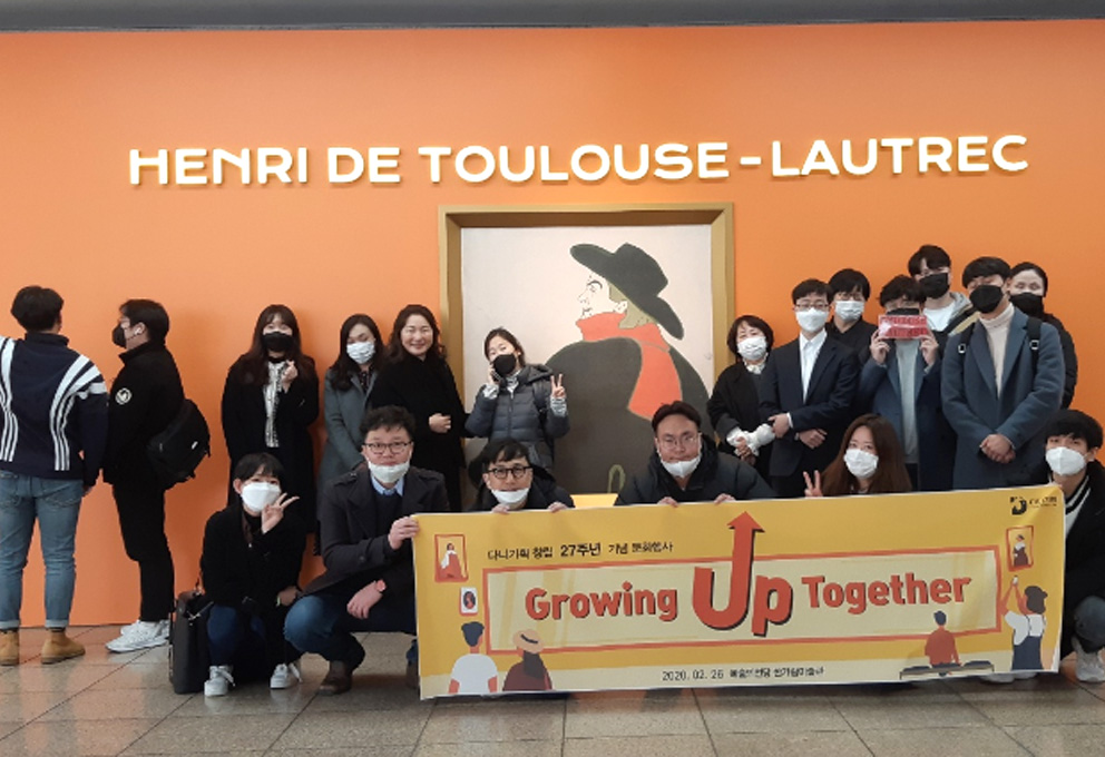 한편 혹시 모를 코로나 바이러스 감염에 대비하여 안전한 관람을 위해 다니기획 임직원은 모두 마스크를 착용함은 물론 장소 이동 시 마다 손소독제를 사용하는 등 전염병 예방에 만전을 기하였습니다. 임직원들로부터 가장 많은 선택을 받은 전시는 ‘툴루즈 로트렉전’이었습니다.