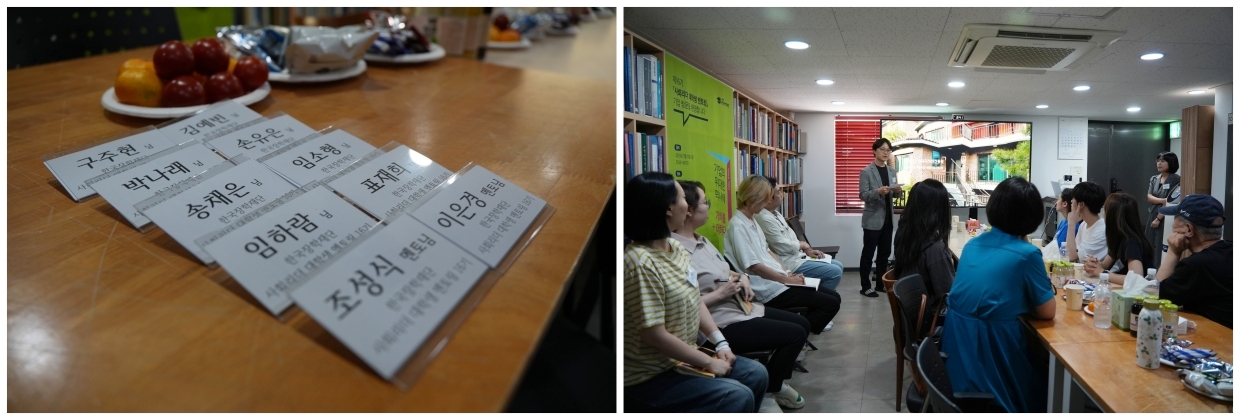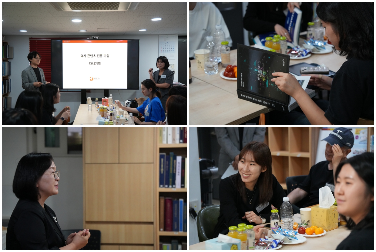 잠시 쉬는 시간에는 김성수 과장과 박정웅 과장의 안내로 다니기획 사옥을 함께 둘러봤습니다. 1층 북카페 옆 서고에서는 지금까지 편찬한 수많은 사사들을 눈과 손으로 훑어보고, 2층과 3층에 올라와서는 책과 문서가 쌓인 책상과 한편에 보관된 오래된 사료들을 눈앞에서 보며 멘티들은 출판 현장의 열기를 직접 느껴볼 수 있었습니다. 한 멘티는 일하는 공간을 이렇게 가까이 체험하는 게 처음이라며, 호기심 가득한 미소로 사옥 곳곳에 걸린 예술 작품들까지 꼼꼼히 눈에 담아갔습니다.