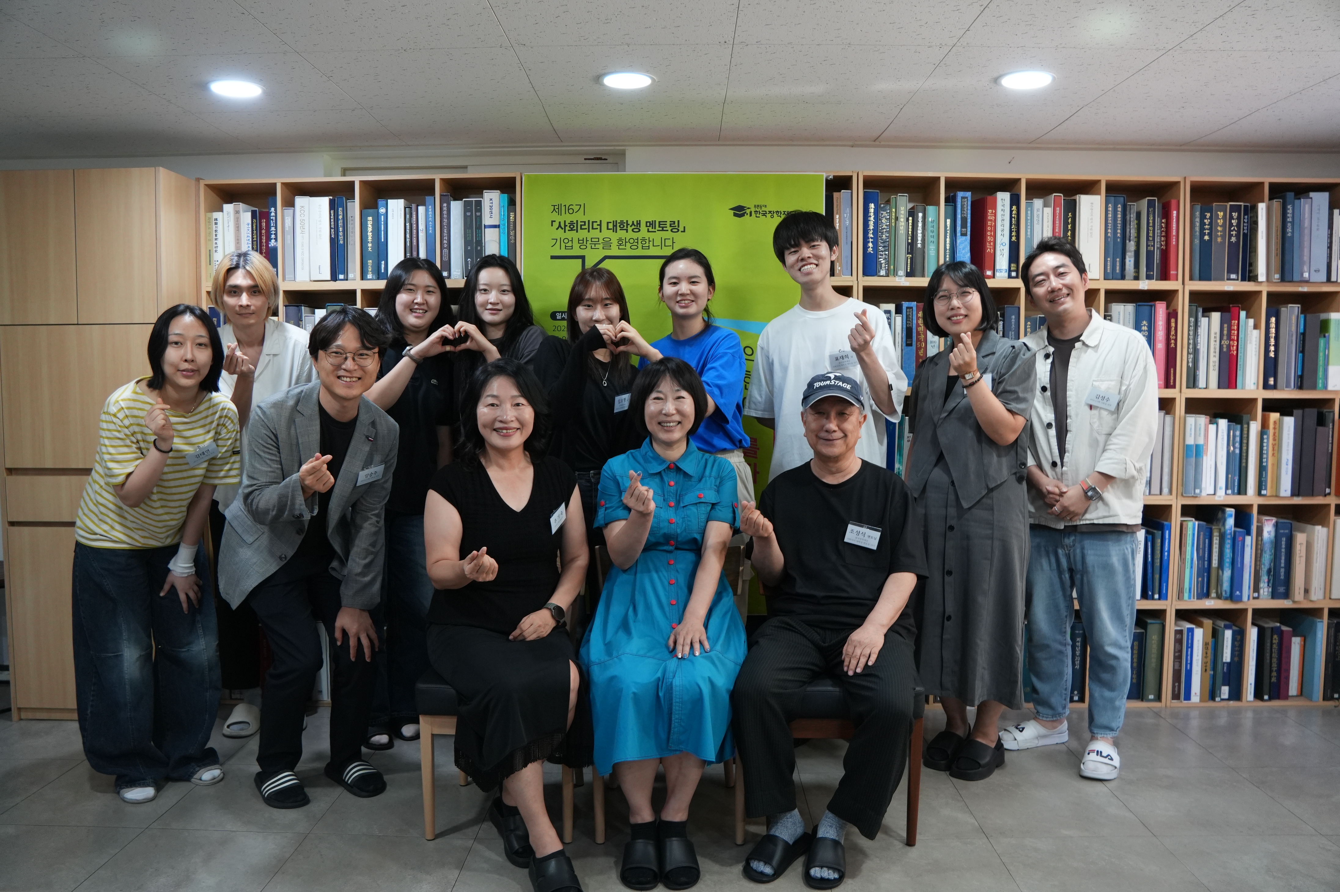 2025년 7월 11일 금요일, ‘사회리더 대학생 멘토링’ 제16기 멘티들이 다니기획을 방문했습니다. ‘사회리더 대학생 멘토링’은 대학생 멘티들이 사회 각 분야의 뛰어난 리더와 함께하며 꿈과 열정, 바른 품행과 리더십을 갖춘 인재로 성장하도록 지원하는 한국장학재단의 대표적 멘토링 프로그램입니다. 다니기획은 2023년부터 매년 조성식(전 포스코에너지 대표이사) 멘토님 및 이은경 부멘토님 팀과 함께 기업 탐방 프로그램을 연속적으로 진행하고 있습니다.