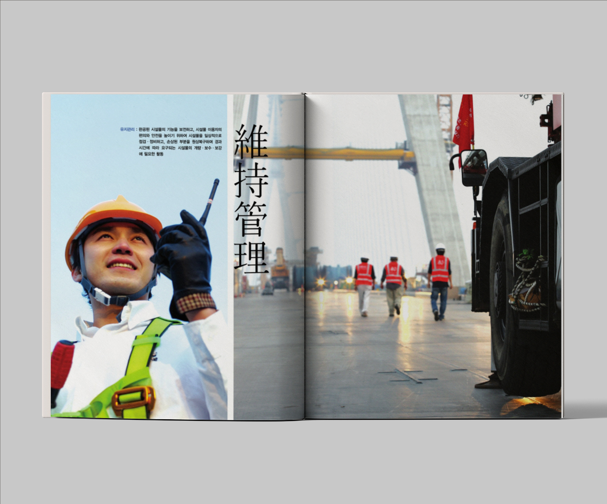 대한시설물유지관리협회 10년사는 화보와 통사, 현황, 부록으로 구성했다. 역사를 시대적 배경과 함께 집필해 사료적 가치를 살렸으며, 사진 구성 및 배열, 다양한 화보 편집 등으로 가독성을 높였다. 교량, 도로, 건물 등 퀄리티 높은 사진을 활용해 업무영역과 협회의 업적을 가감 없이 보여주었다.