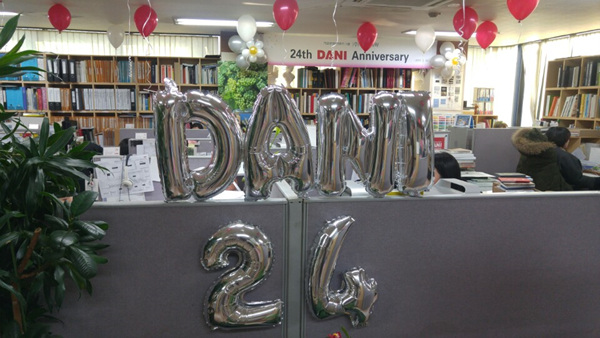 창립일인 26일, 다니기획 임직원들은 형형색색의 풍선으로 장식한 사무실에서 자축하는 기념행사를 가졌다. 추기숙 대표이사는 기념사에서 “그동안 함께해준 임직원 모두 정말 고맙다.”고 감사의 뜻을 전했으며, “내년이면 우리 회사도 4반세기를 맞는다. 앞으로의 더 큰 성장을 위해 창업 당시의 초심을 잃지 않겠다. 멀리 가려면 함께 가라고 했듯이, 모든 임직원들이 서로 협조하며 맡은 분야에서 최선을 다할 때 회사가 발전하고 개개인도 함께 성장할 수 있다.”고 강조했다.