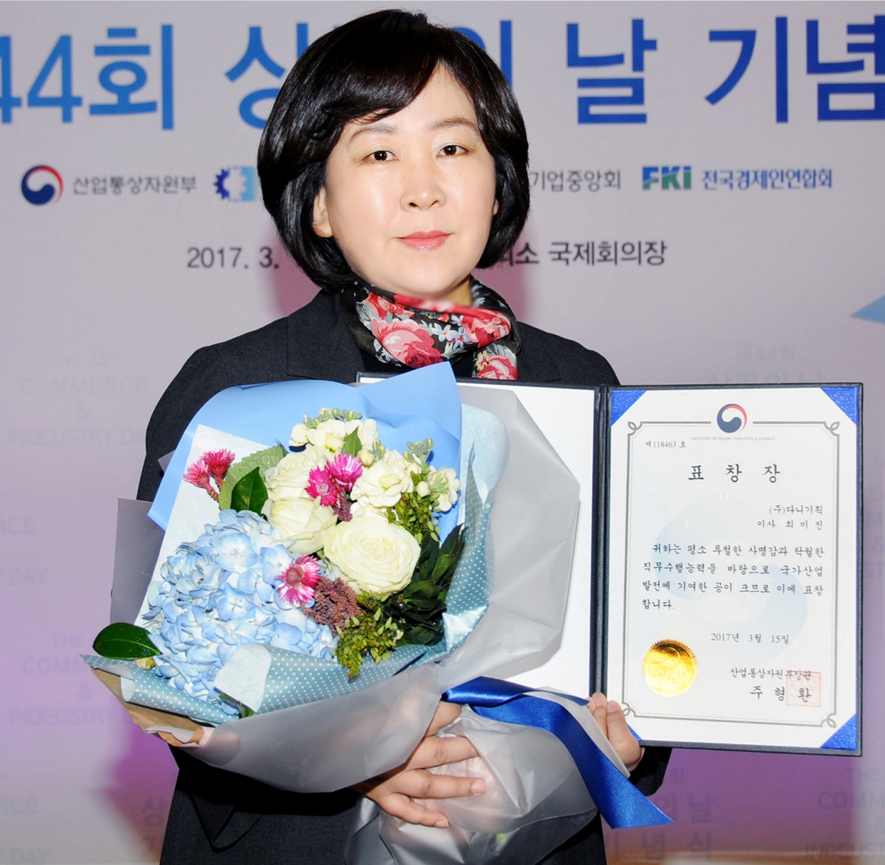 2017년 3월 15일 재44회 ‘상공의 날’ 다니기획 최미진 총괄이사가 사사편찬업무 수행을 통해 국가산업발전에 기여한 공로로 산업통상자원부 장관 표창을 수상하였다.