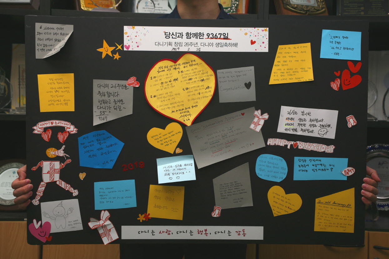 전 임직원은 창립 26주년의 기쁨과 감사의 마음을 모아 롤링페이퍼를 작성해 추기숙 대표이사에게 전달했으며, 이에 추기숙 대표이사는 “사옥 이전과 창립 26주년 기념행사를 함께해준 임직원 여러분들께 감사의 인사를 드립니다. 앞으로도 직원들로부터 배울 수 있는 대표가 되도록 더욱 성장하겠습니다.”라는 감사의 인사를 전했습니다.