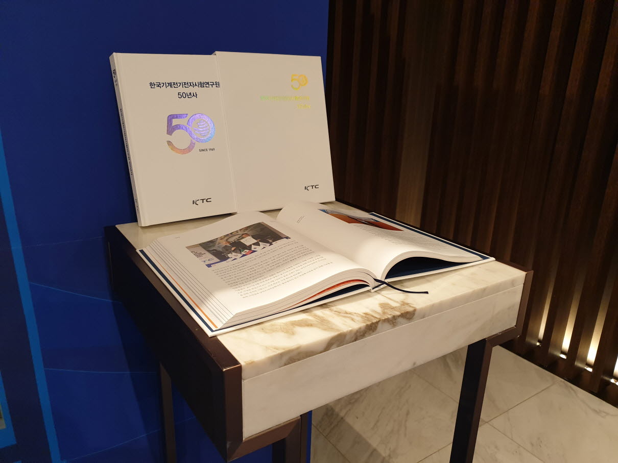 그리고 2019년 7월 1일 서울 JW 메리어트 호텔에서 많은 국내외 인사들이 참석한 가운데 KTC 창립 50주년 기념식이 개최되었습니다. 로비에는 50년의 역사를 한눈에 살펴볼 수 있는 아트월과 다니기획에서 제작한 <한국기계전기전자시험연구원 50년사>를 함께 전시하여 창립 기념식의 의미를 더했습니다.