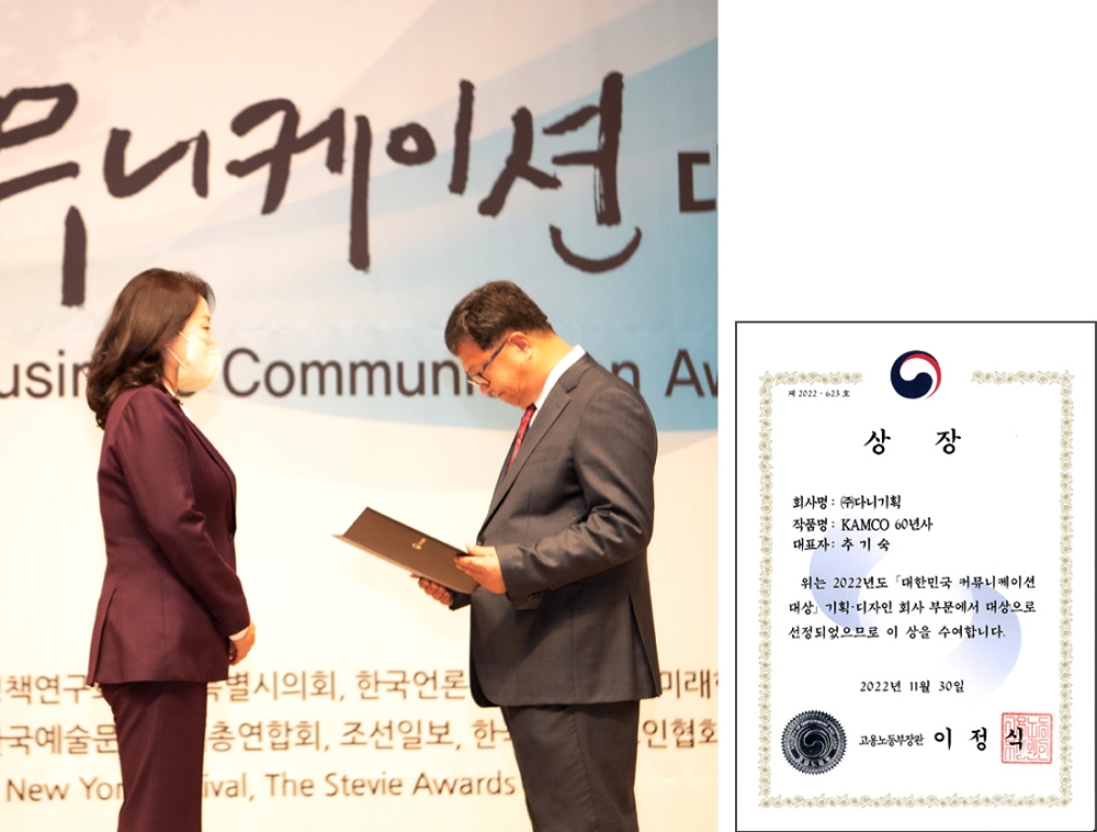 사사편찬전문회사 다니기획(대표이사 추기숙)이 올해로 32회째를 맞이한 2022 대한민국 커뮤니케이션 대상의 기획/디자인회사부문에서 고용노동부 장관상을 수상했습니다.
