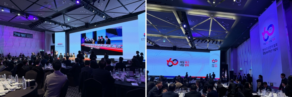 60주년 기념행사는 ‘매일 체크, 내일 행복’이라는 슬로건 아래 진행됐습니다. 1부에서는 오프닝 영상을 시작으로 내빈 소개가 이어졌고, 김인원 한국건강관리협회장의 기념사가 진행됐습니다. 2부에서는 학술대회가 열려 협회 관계자와 내외빈이 참여한 가운데 의미 있는 시간이 이어졌습니다.