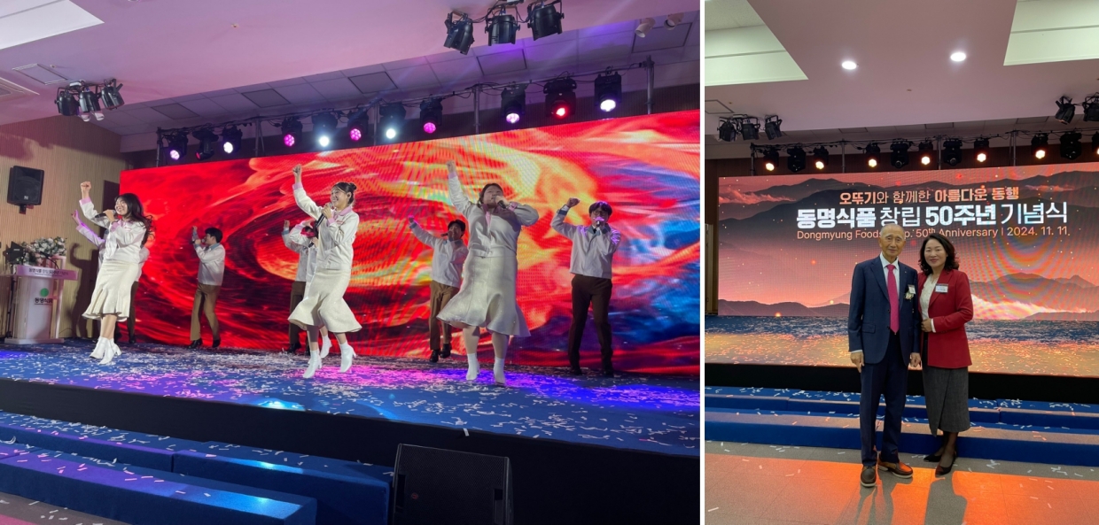경남의 산청한방가족호텔 왕산홀에서 많은 내빈이 참석한 가운데 열린 이번 동명식품의 창립 50주년 기념행사에는 박재동 회장의 경영철학을 배경으로 한 포토월과 다니기획에서 제작한 『동명식품 50년사』가 함께 전시되어 창립 기념행사의 의미를 더했습니다.