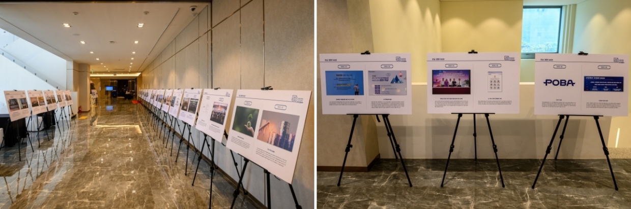 행사장 로비에서는 대한지방행정공제회와 다니기획이 50년사 편찬 시 기획한 콘텐츠인 ‘반세기 주요 장면 50선’을 한눈에 볼 수 있는 이젤 전시가 열렸습니다. 이번 전시는 대한지방행정공제회 창립 이후의 성장 과정과 주요 성과를 시각적으로 조명하는 기회가 되었습니다.