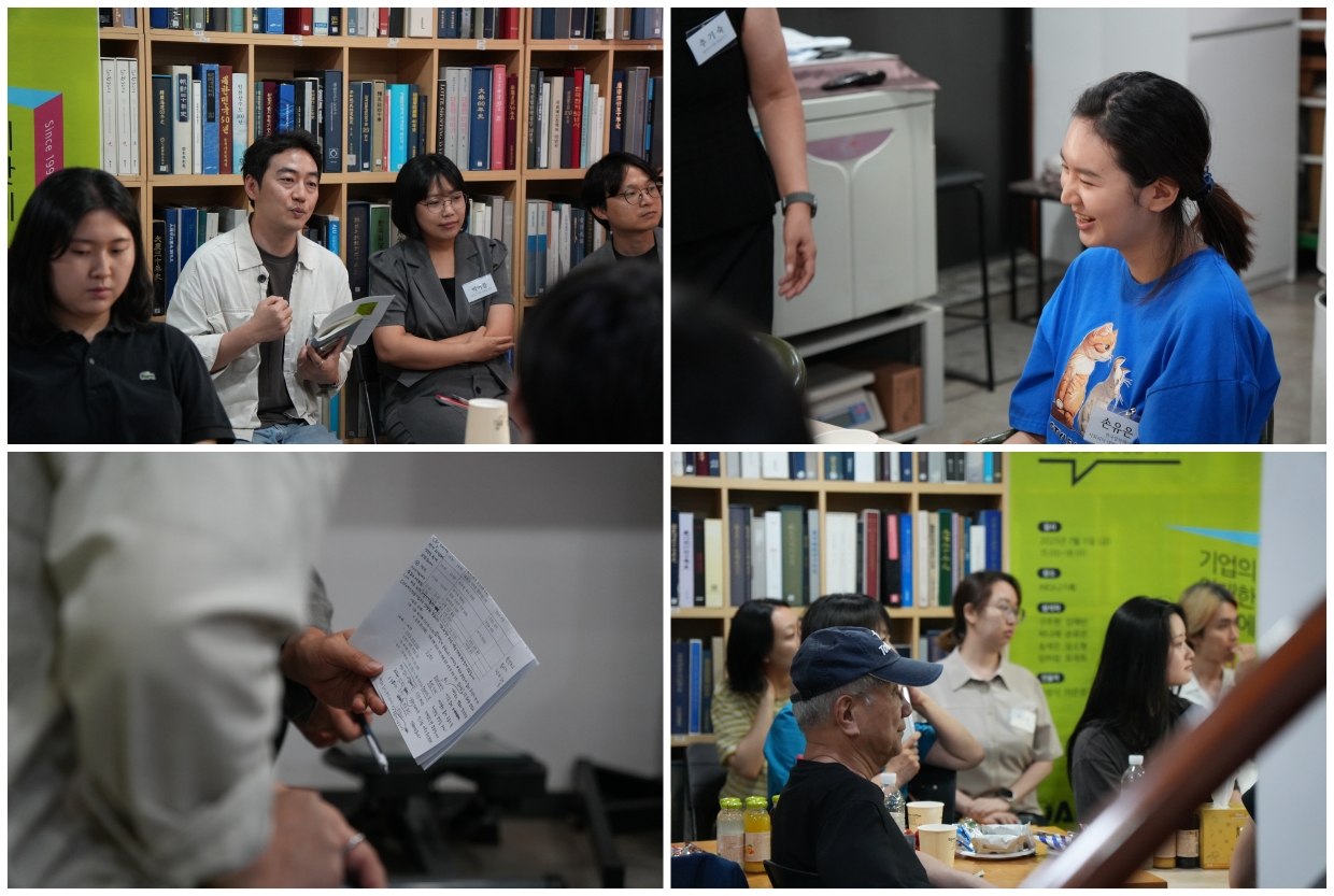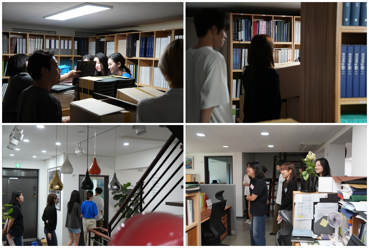 잠시 쉬는 시간에는 김성수 과장과 박정웅 과장의 안내로 다니기획 사옥을 함께 둘러봤습니다. 1층 북카페 옆 서고에서는 지금까지 편찬한 수많은 사사들을 눈과 손으로 훑어보고, 2층과 3층에 올라와서는 책과 문서가 쌓인 책상과 한편에 보관된 오래된 사료들을 눈앞에서 보며 멘티들은 출판 현장의 열기를 직접 느껴볼 수 있었습니다. 한 멘티는 일하는 공간을 이렇게 가까이 체험하는 게 처음이라며, 호기심 가득한 미소로 사옥 곳곳에 걸린 예술 작품들까지 꼼꼼히 눈에 담아갔습니다.